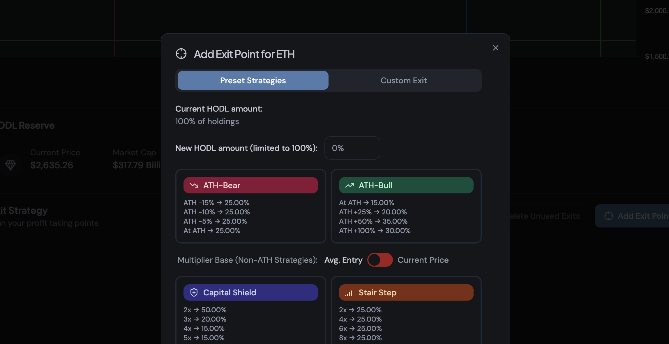 No email needed, zero personal data collected - just secure, anonymous, Crypto Portfolio Exit Strategy management focused on making profitable exits. Built by a full-time HODLER who finally learned to take profits, and now helps others do the same. GTFO now, GTFI later - follow the cycle.