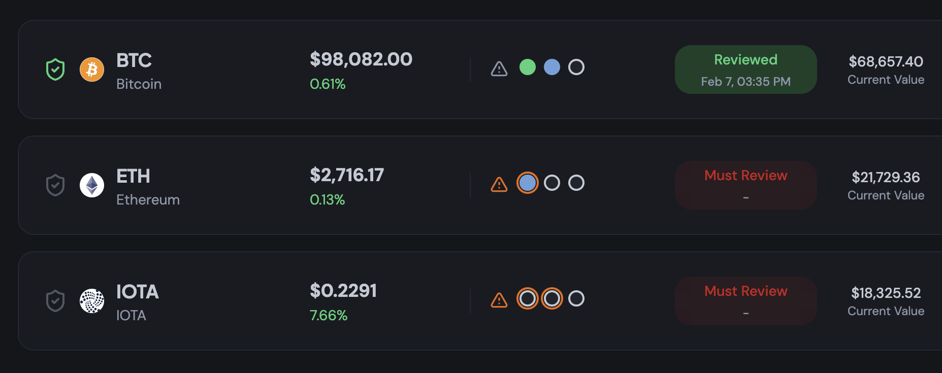 Get warnings when your bags are close to your price targets for un-ordered and un-filled exits and keep track of your review schedule.